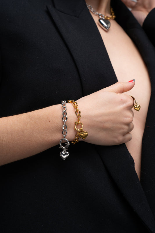 Bracelet double chaîne - coeur